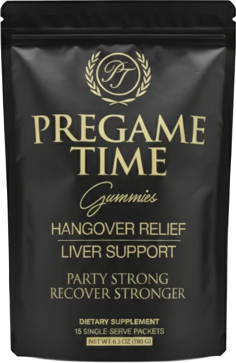 Pregame Time Gummies are formulated to help replenish electrolytes, support liver function, and reduce hangover symptoms — so you can recover stronger after a night out.
